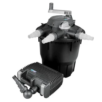 All you need for clear water – the Hozelock Bioforce 6000 filter with UVC and the Aquaforce 4000 water pump. The new Hozelock Bioforce 3000 Kit is the combination of the Bioforce and the Aquaforce solids handling pumps, designed specifically for filtration, waterfalls or watercourses. Due to the UVC capability, in the correct size pond, Hozelock Cyprio guarantee Clearwater. •Max. pond size 12000lts •Bioforce 6000 •Aquaforce 4000