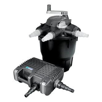 All you need for clear water – the Hozelock Bioforce 9000 filter with UVC and the Aquaforce 6000 water pump. The new Hozelock Bioforce 3000 Kit is the combination of the Bioforce and the Aquaforce solids handling pumps, designed specifically for filtration, waterfalls or watercourses. Due to the UVC capability, in the correct size pond, Hozelock Cyprio guarantee Clearwater. •Max. pond size 18000lts •Bioforce 9000 •Aquaforce 6000