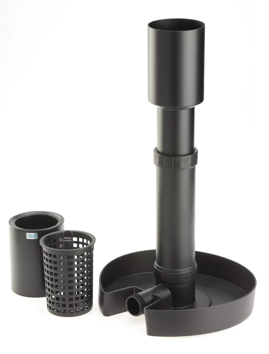 Powerful suction cleaning of pond surfaces up to 40 m² The result is clearly improved water quality and viewing depth through direct removal of pollutants on the surface. It has a base with large-surface receptacle for rocks as ballast. The AquaSkim 20 now also allows use of the AquaMax Eco Premium models 4000 – 8000. Easy maintenance with easily accessible coarse debris basket that can also be taken out from a distance via grip hooks. – Dimensions (Ø x H) (mm) 350 x 800 – Net weight 1.6kg – Height adaptation (mm) 320-550/550-800 – Tube diameter (mm) 80 – Filter volume 1,2 – Pos. water level difference 100 mm – Pump capacity min. (l / h) 4000 – Pump capacity max. (l / h) 8000 – Connections, outlet 1″, 1 ¼”, 1 ½”
