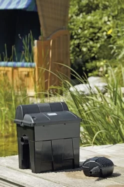 Oase BioSmart Pond Filter and Pump Set offers an efficient and high-performance filtration for your garden pond or water feature. Ensure clear and healthy pond water thanks to the combination of a large filter foam surface and integrated UVC technology.Â