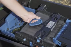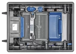 More convenience, thanks to automatically driven self cleaning of the belt filter. Adjustable Cleaning Sensor controls the belt run, depending on the degree of pollution. Includes LED function check. Cleaning of filter sponges directly in the filter, without removal. Sludge drain with slide valve for removing debris from the filter system.