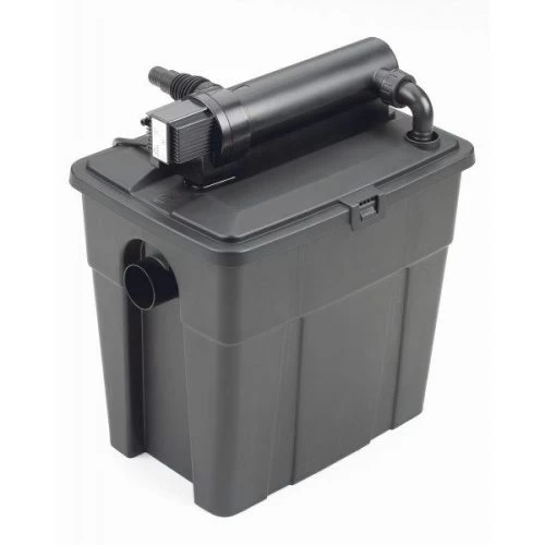 Available as the 5000 and 8000 model. The 5000 model is for ponds up to 5000 litres without fish stock or 2500 litres with fish. The 8000 model is for ponds up to 8000 litres without fish stock and 4000 litres with fish. The 5000 model has an integrated 7 watt UVC clarifier and the 8000 has an 11 watt UVC.