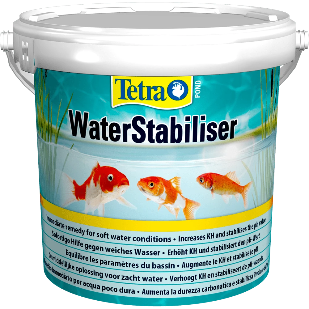 Tetra Pond Water Stabiliser ensures a quick and effective stabilisation of important water values in garden ponds. Allows a controlled increase of the carbonate hardness (KH). Compensates the natural, continuous KH reduction in the water and prevents the water from becoming too soft. Stabilises the important pH value and prevents fish losses due to pH variation. Stable KH and pH values are basic requirements for healthy water and the well-being of your fish and pond dwellers. Dissolves quickly, does not cloud and works immediately
