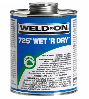 Clear medium bodied extremely fast setting Weld-On PVC-U Plastic Pipe Cement/Solvent.